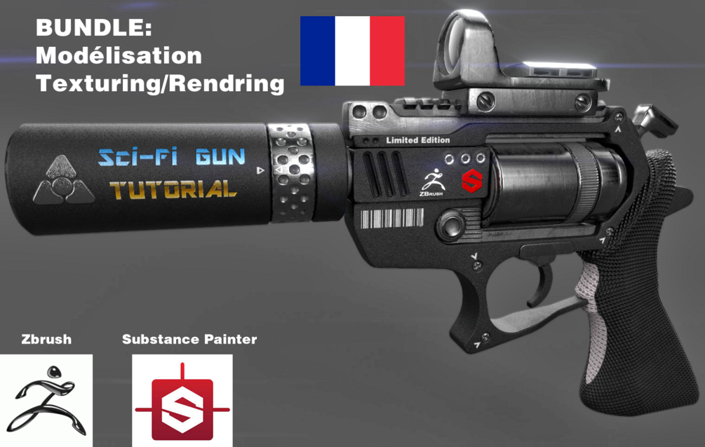 Dans ce tuto très complet, vous apprendrez à modéliser dans Zbrush ce pistolet et tout ses accessoires/détails à partir d'une simple image de référence.
